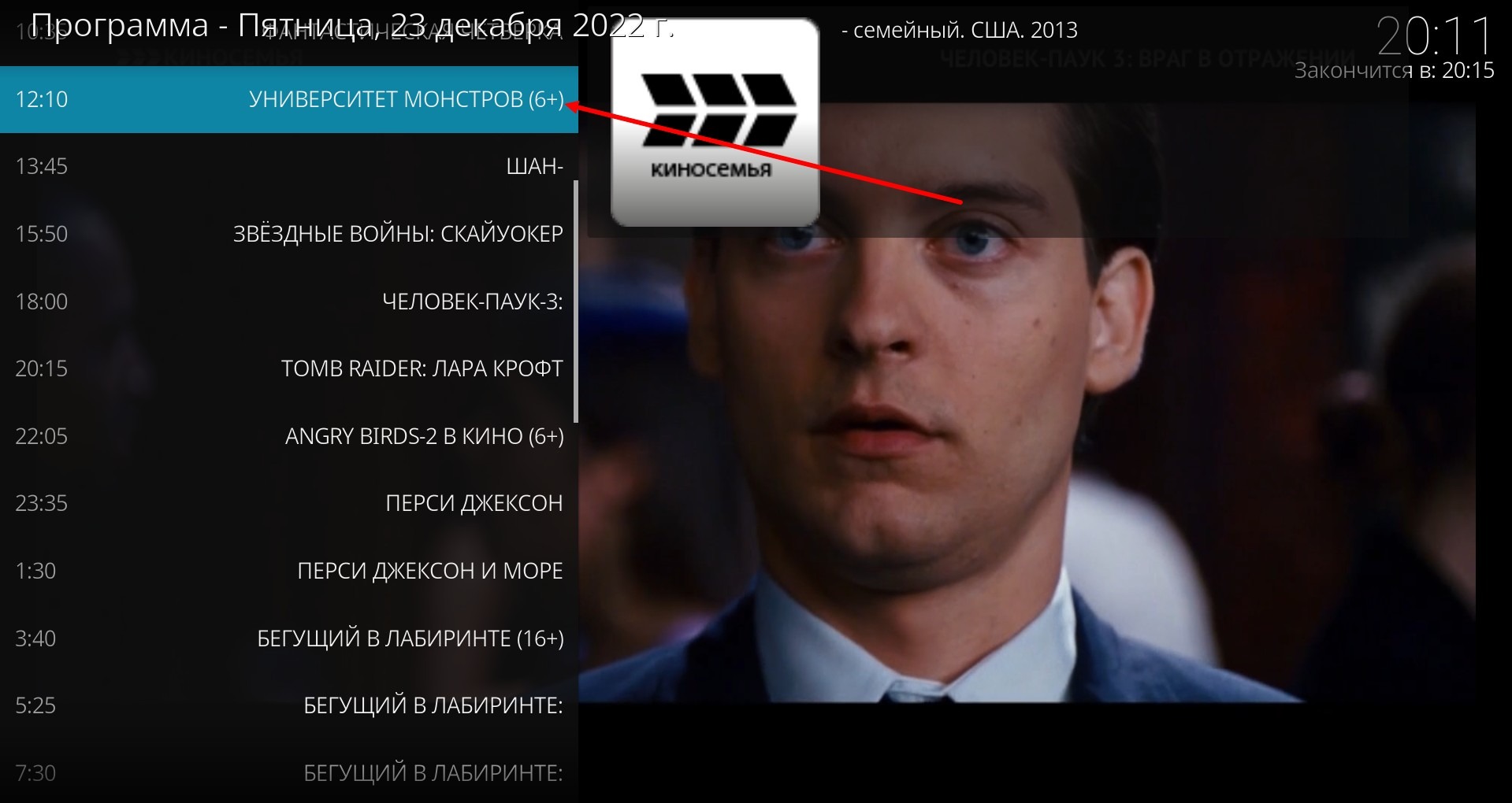 Es öffnet sich ein Fenster mit dem Programm des Kanals, unten (im Verhältnis zur aktuellen Sendung) ist das, was später sein wird, oben - archivierte Sendungen.