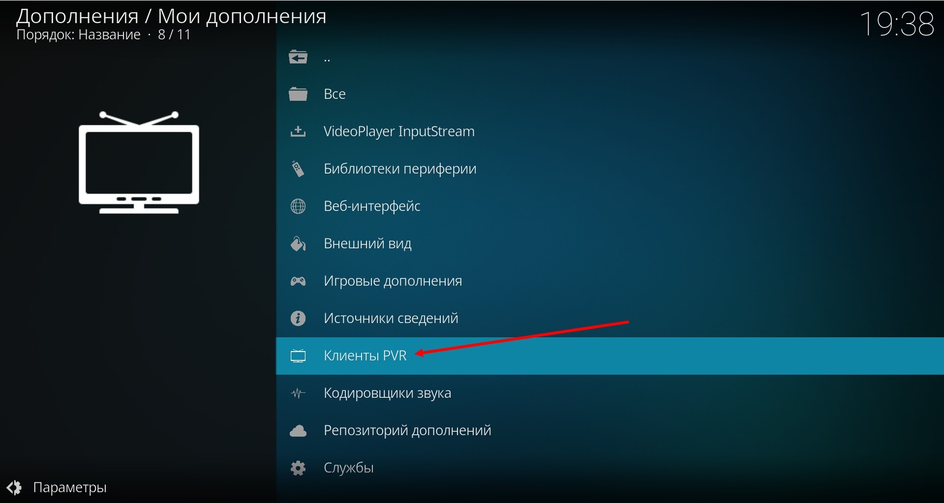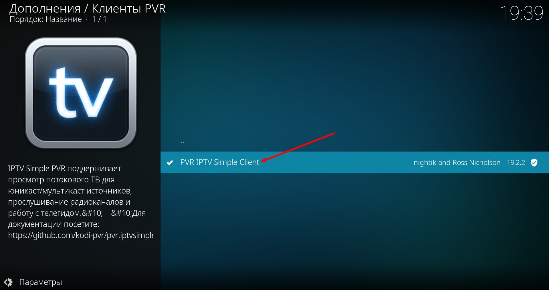 Und klicken Sie auf "PVR IPTV Simple Client"