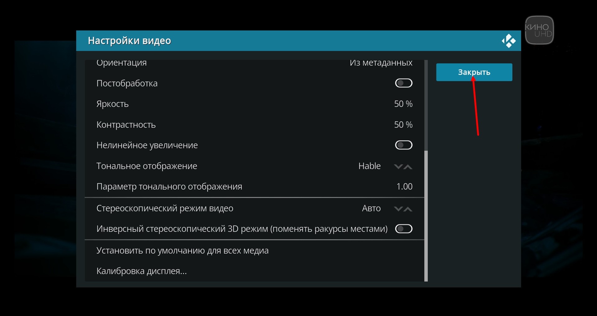 In demselben Menü können Sie den Kontrast für 4k-Kanäle durch die Einstellung "Tonabbildung" einstellen.