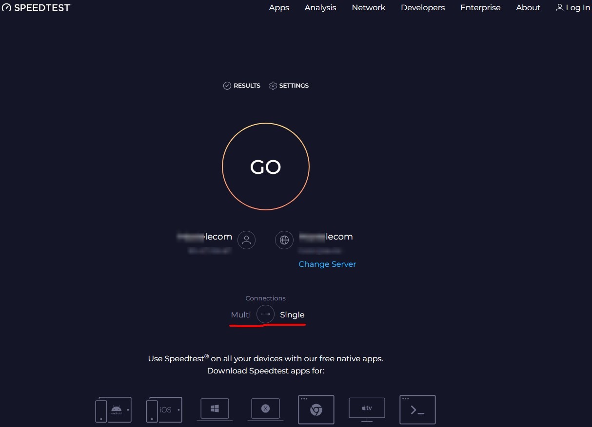 To do this, switch the speedtest to Single mode