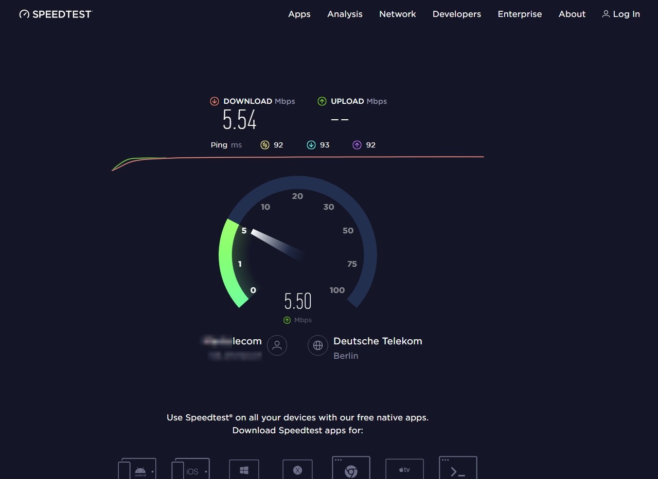 Beautiful numbers, compared to the test on Berlin, but our servers, unfortunately, are not within our providers' networks, so beautiful numbers are just a fiction.