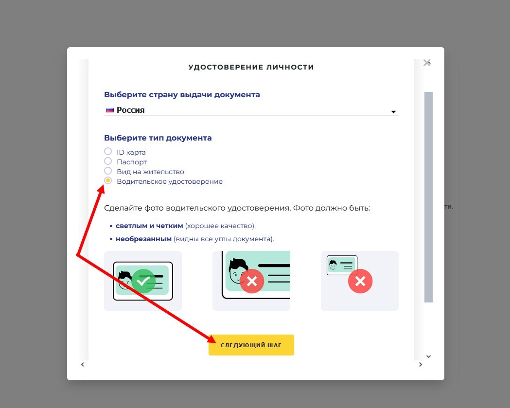 First I decided to verify myself by passport (by default it is suggested by foreign passport, you can choose internal), I kind of made a normal photo of the passport with 2 or 3 times (if the photo is bad, it suggests to reshoot), with 5 or 6 times passed my selfie, you need to not only look at the camera, you need to, either blink, or nod, or open-close mouth, or move head from side to side - on the phone screen face with hints what to do, don't try too hard to perform these movements, as does this face, doesn't pass, need naturally; in general, they accepted my data and their check began (although it is written that the check lasts more than a day, but mostly it is fast); after 20-30 minutes got a refusal with the wording "blurred photograph"; I spat on the passport and took the driver's license, the photo turned out to be very clear from the first time, the selfie also passed much faster and some time later they approved my verification.