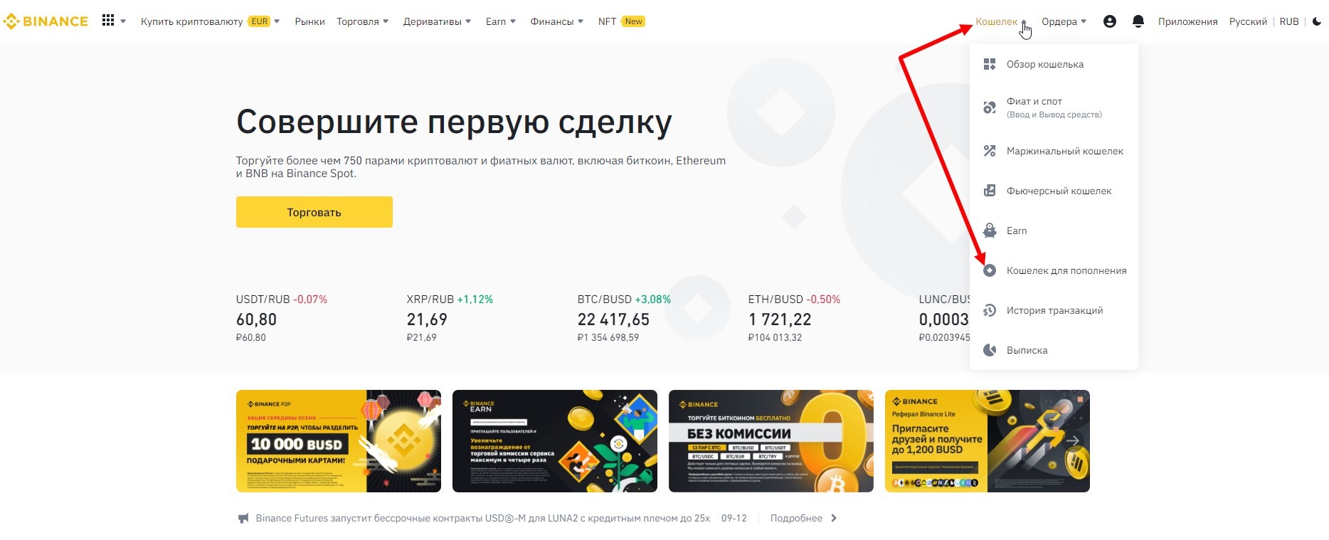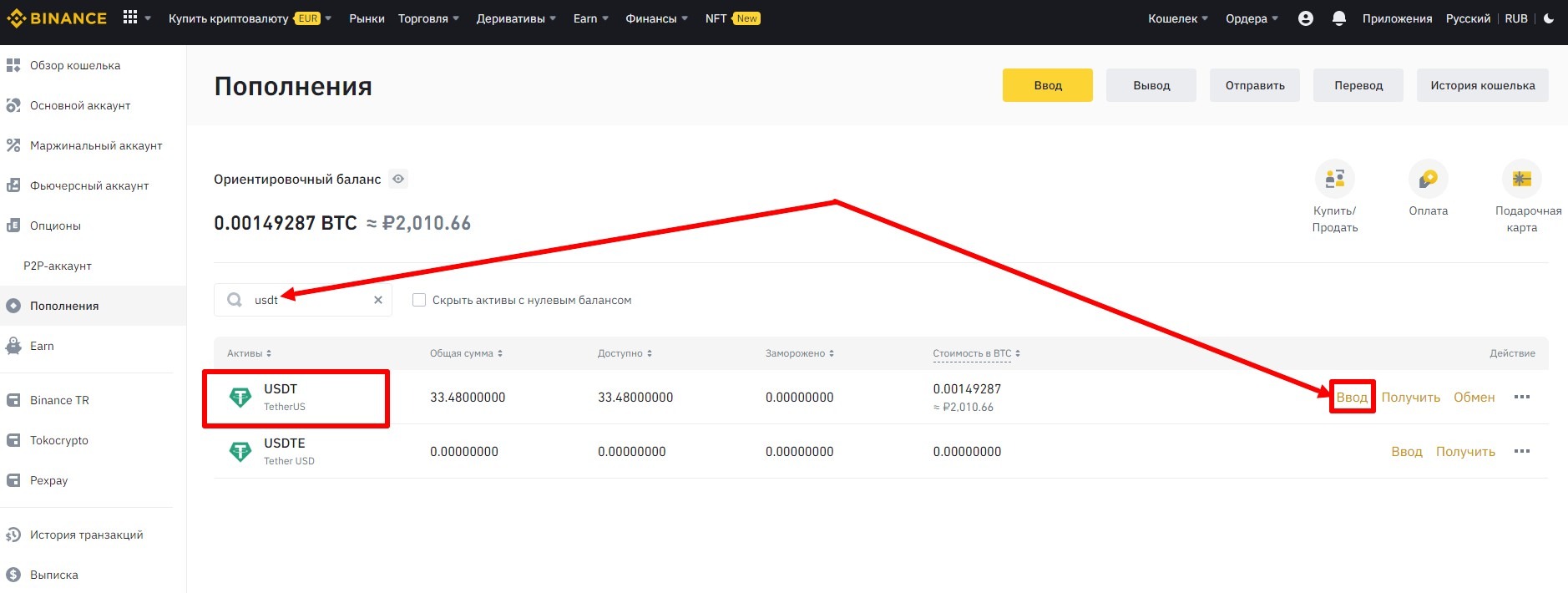 Go back to the Binance cabinet and go to Wallet - Wallet for Top-up - press Withdraw