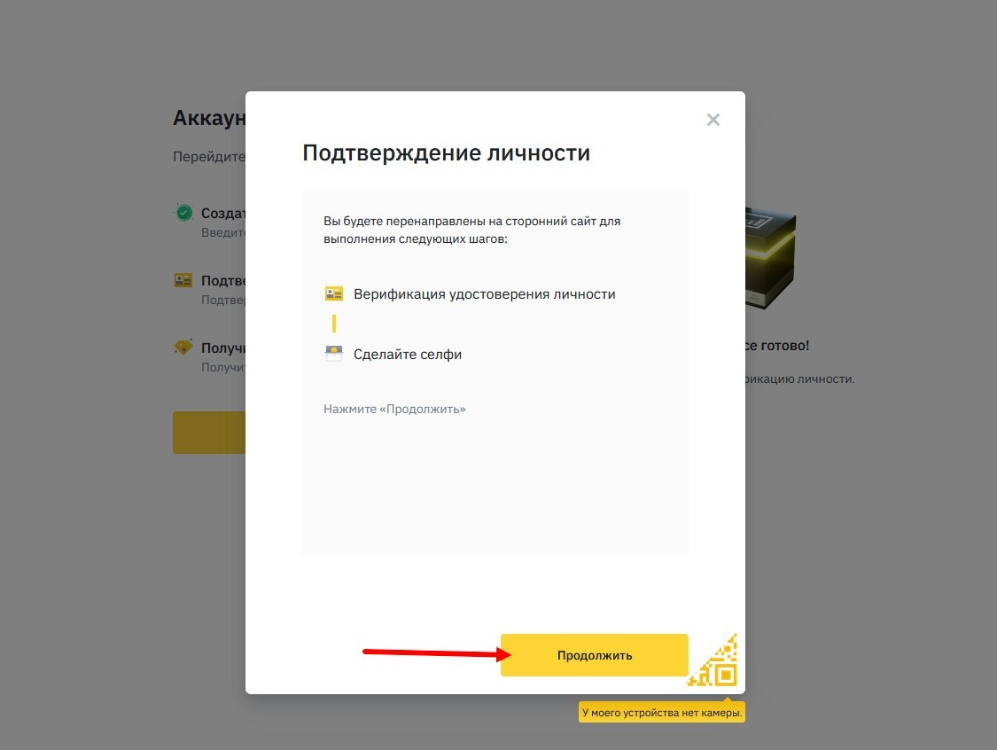 It will take a bit of time to confirm your identity, but overall it's not that scary. I'll tell you about the difficulties I encountered: everything will be scanned through the camera of your computer (or phone), on my computer the camera is installed, in the browser it is not forbidden to use it, but either it doesn't work anymore, or it is not physically connected, or just drivers are not installed... in general, it gave a message about the unconnected camera;
