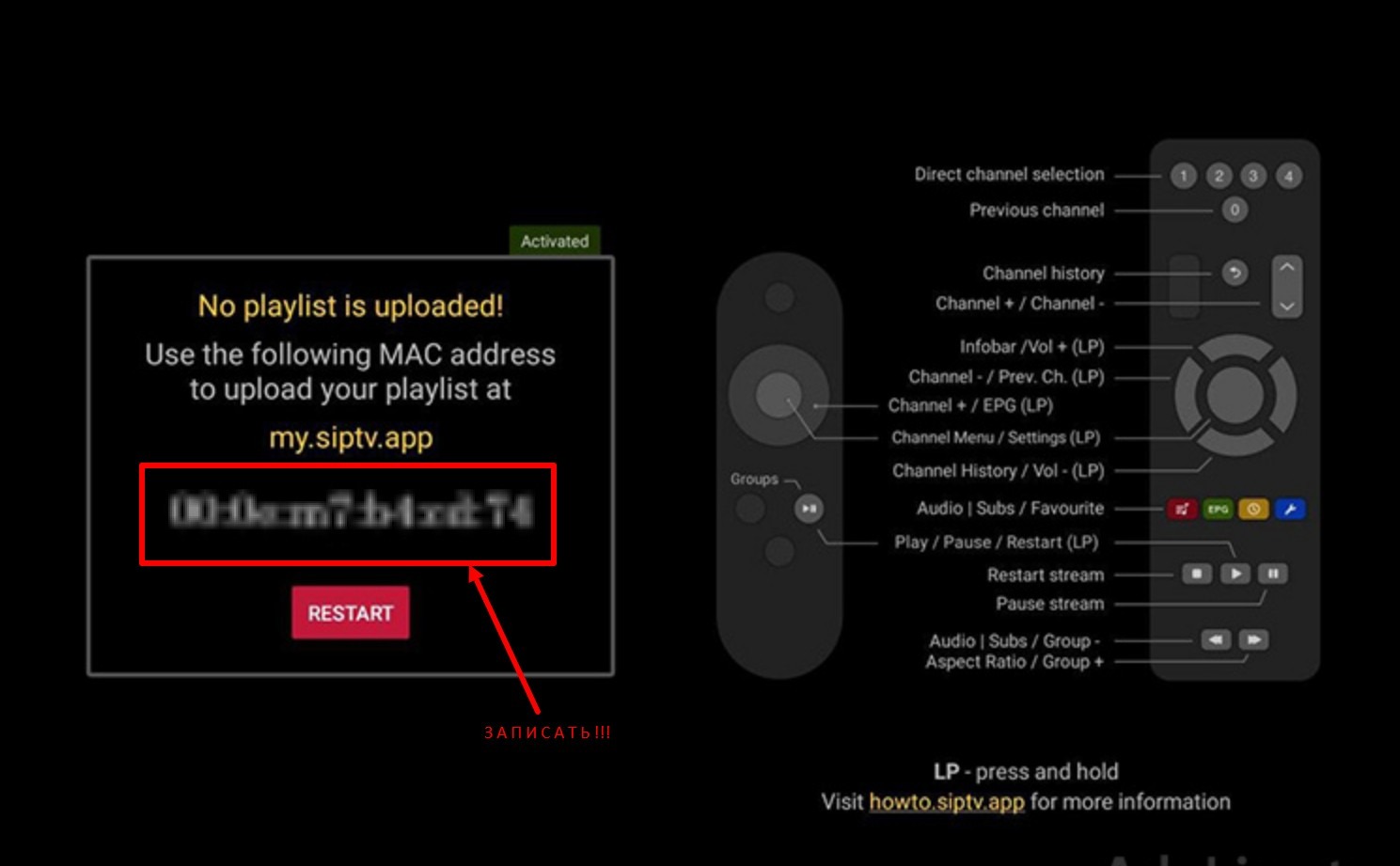 After installing the application, the first time it is launched, a window with the MAC address of your device will appear, you need to remember it, it is necessary for purchasing the program and loading playlists into the device. It is better to write it down, although if you know how, you will easily find it in the settings of your device.