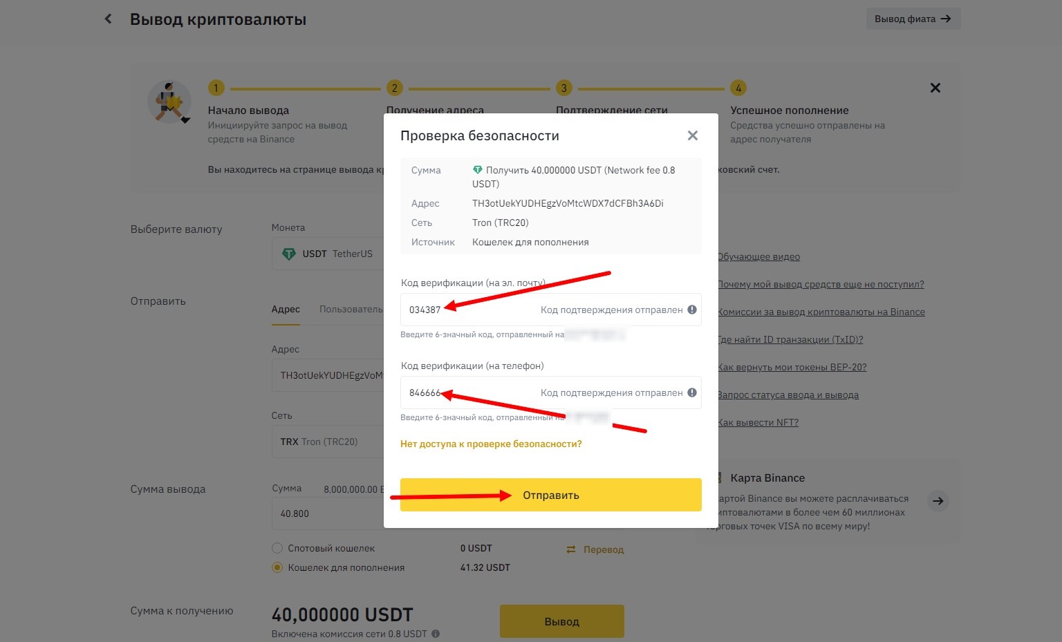 Снова переходите в кабинет бинансе и заходите в Кошелек - Кошелек для пополнения - нажимаете Вывод