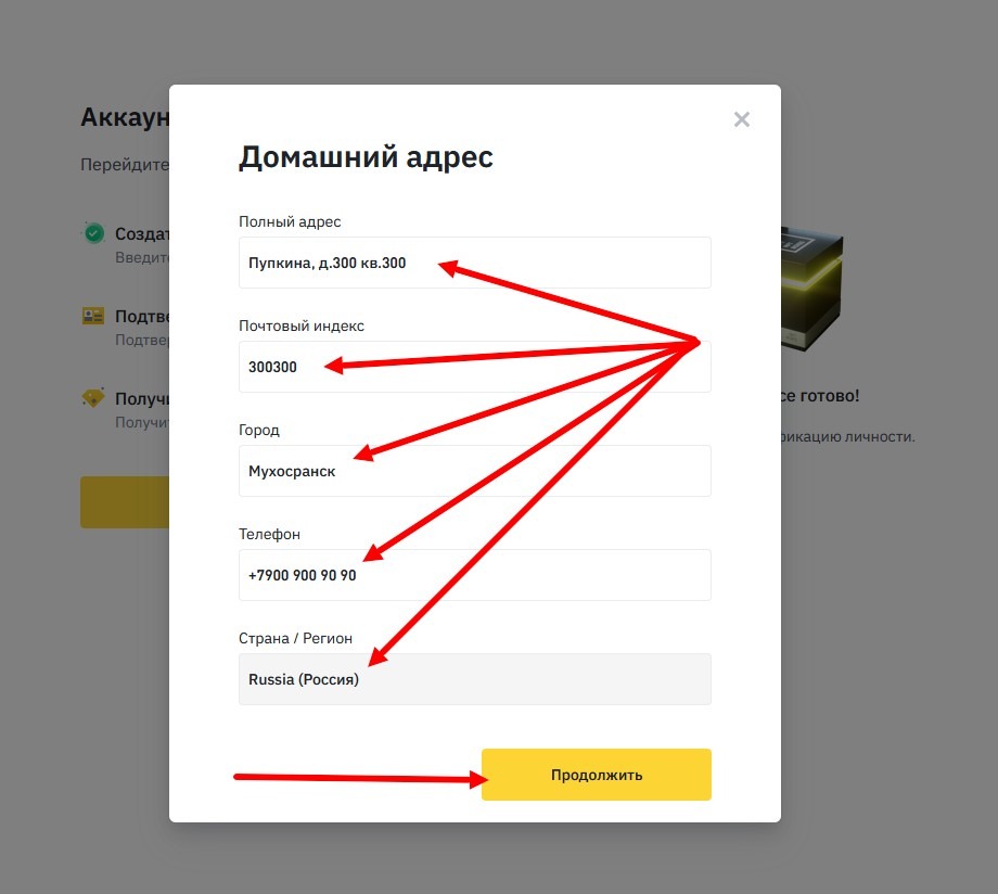 Жмете "Продолжить". Предлагается ввести домашний адрес и телефон.