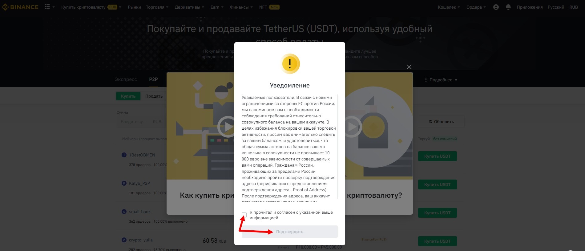 Читаете уведомление, ставите галку и нажимаете Подтвердить