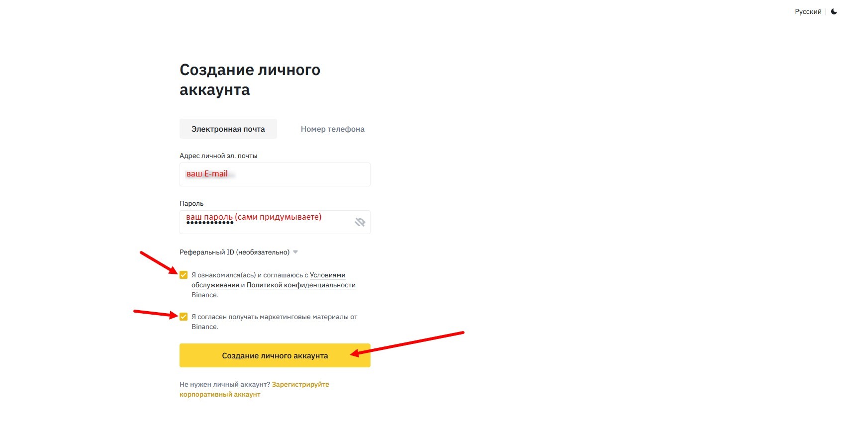 Регистрируетесь на бинанс https://www.binance.com/ru
