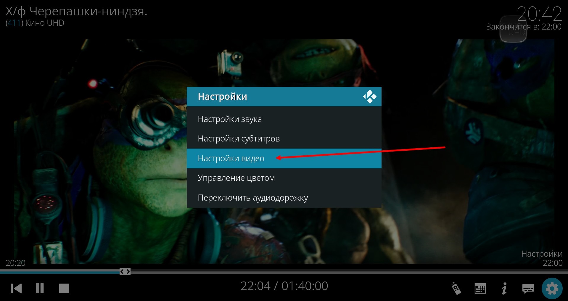 Если у вас слабое железо и лагают 4k (UHD/FHD) каналы, то это можно попробовать устранить настройкой. Включаем 4k канал, нажимаем Enter или щелкаем мышью по экрану приложения, выбираем значок шестеренки (Настройки)