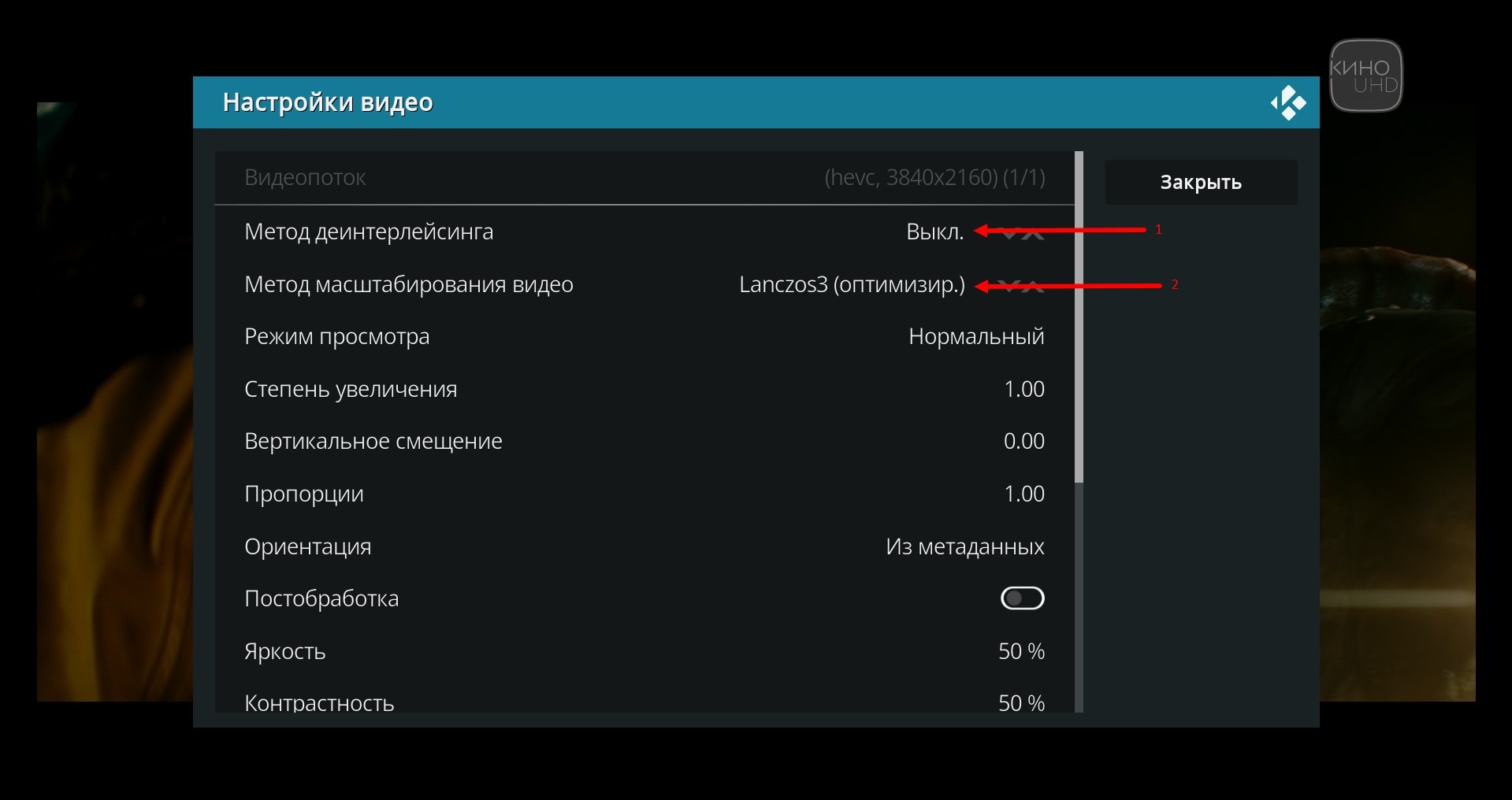 Устанавливаем: Метод деинтерлейсинга - Выкл Метод масштабирования видео - Lanczos3 (оптимизир.)