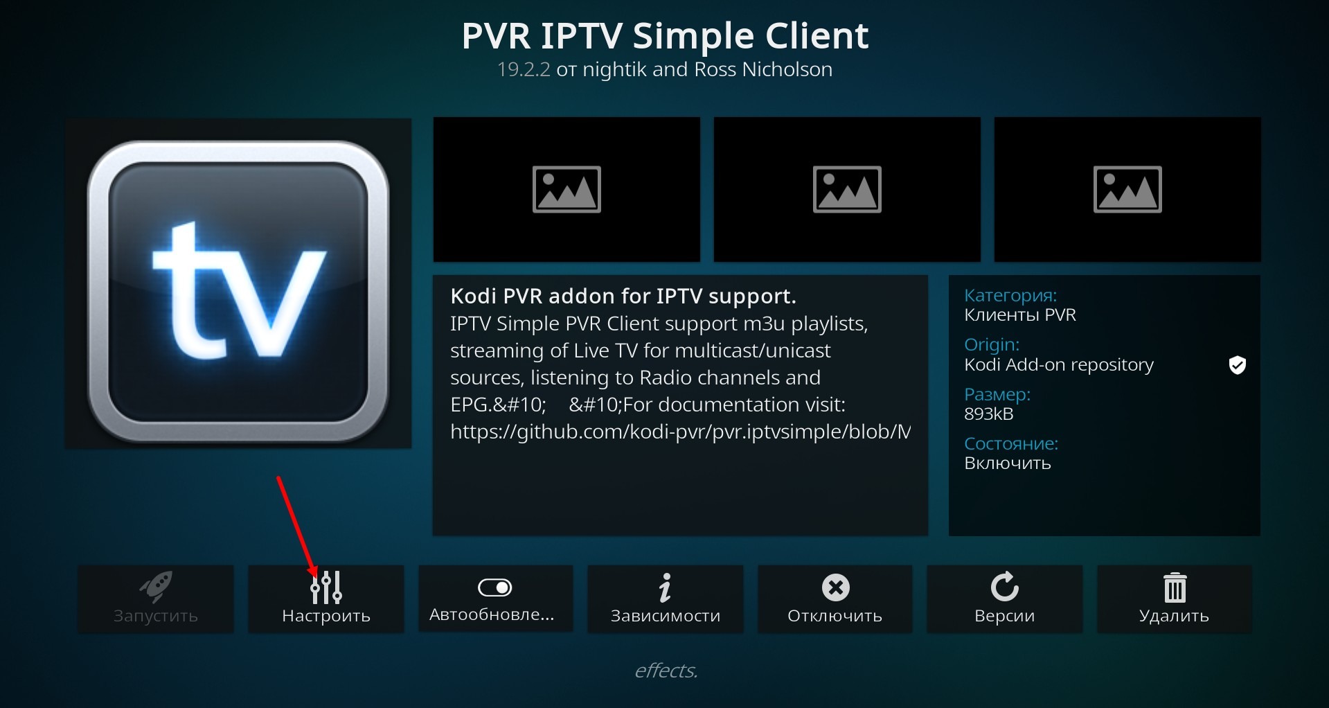Откроется окно, в котором можно войти в настройки клиента PVR.
