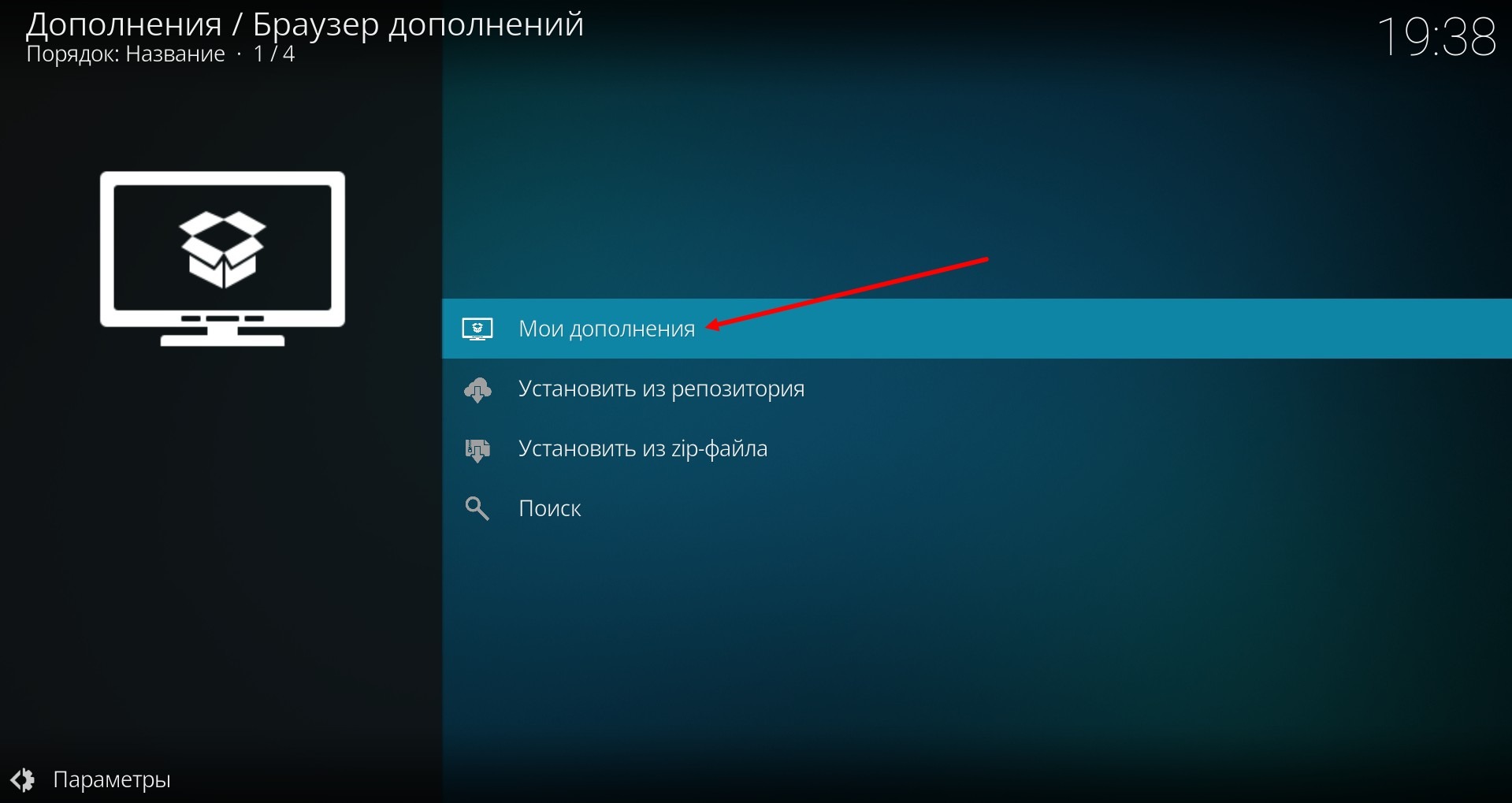 и нажав кнопку Выйти. Затем снова запускаем приложение Kodi.